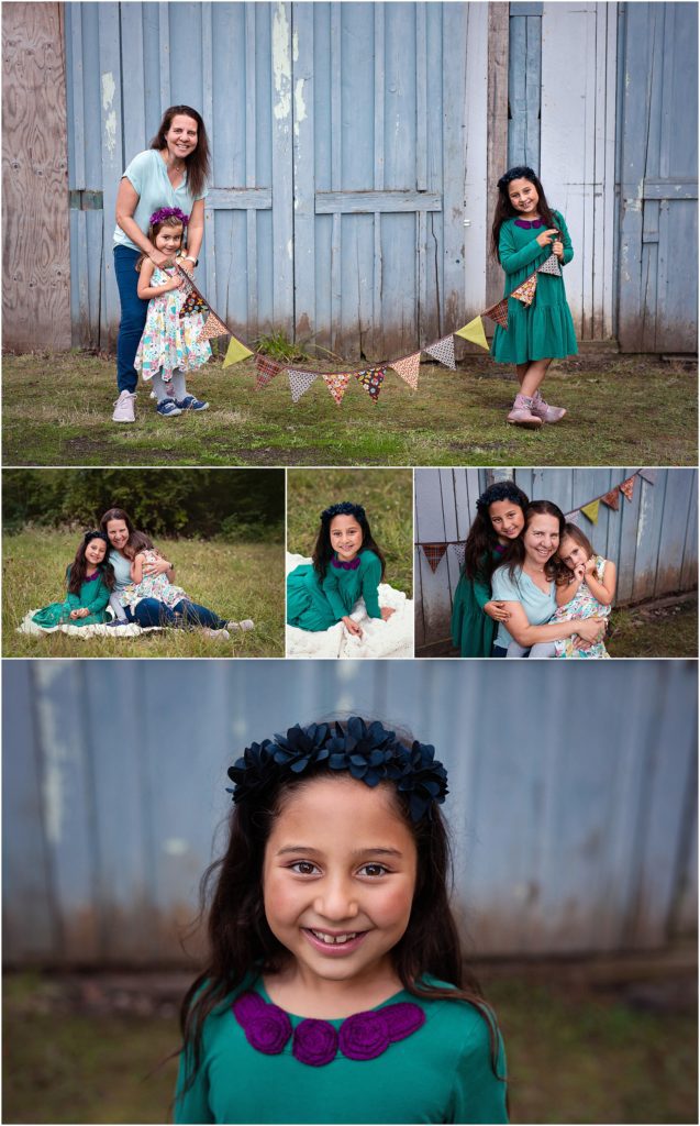 It was lovely to meet these three ladies for a mini session to surprise dad with some photos, a gift I’m sure he’ll love! They brought along this adorable bunting which worked really well with the fun blue barn doors. Little sister wasn’t feeling quite as cooperative as big sister but we managed to get a few with her included. With kids that are slow to warm up or you know are usually camera shy it’s a good idea to let me know ahead of time so I’ll be prepared with some distractions and games we can play to help them loosen up. They may not always be a good fit for mini sessions, and booking a regular family session takes the pressure off everyone because time isn’t a factor. I have lots of tricks up my sleeves for the hard to photograph kids and with enough time and coaxing, even the hardest to photograph kid usually cooperates eventually!